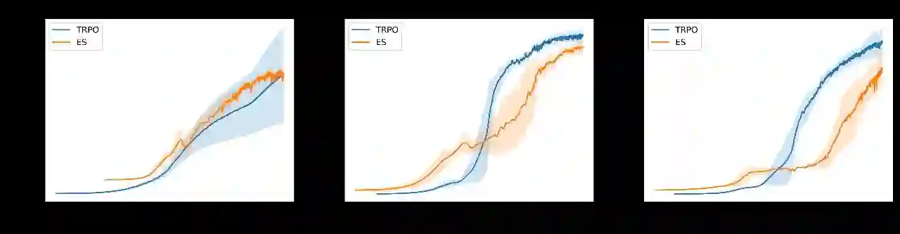 我们的发现是这种已有数十年之久思想强大结果的现代延续。比如说,在 2012 年,AlexNet 论文表明可以如何设计、扩展和训练卷积神经网络(CNN)以在图像识别任务上实现极其优秀的结果,而那时候大多数研究者还认为 CNN 并不是一种有希望的计算机视觉技术。类似地,在 2013 年,深度 Q 学习(Deep Q-Learning)论文表明可以将 Q 学习与 CNN 结合起来以成功地解决 Atari 游戏,从而使强化学习(RL)发展成为了一个有激动人心的实验结果的研究领域,而不再只是理论构想了。同样,我们的研究也表明进化策略可以在强化学习基准上实现优秀的表现,从而消除了人们之前普遍认为的进化策略方法不能用于高维问题的观点。