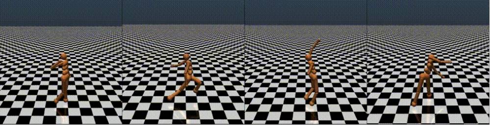 以下是用进化策略训练的 3D 人形任务行走的动图。就像我们所看到的,根据优化最终收敛到的局部最优值,结果挺多样的。