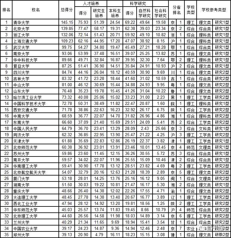 武书连2020中国一流大学名单(共27所),得分越低排名越前。