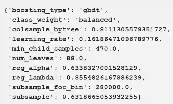 当交叉验证完成后,我们将得到最高得分(ROC AUC)。之后,由于我们想要得到的是最小值,我们将采用「1-最高得分」。该值将在返回的字典数据结构中作为「loss」关键字返回。