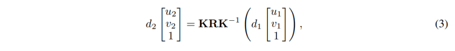 其实这里[KRK^-1]就是homography matrix (H)。重写公式(3)就得到: