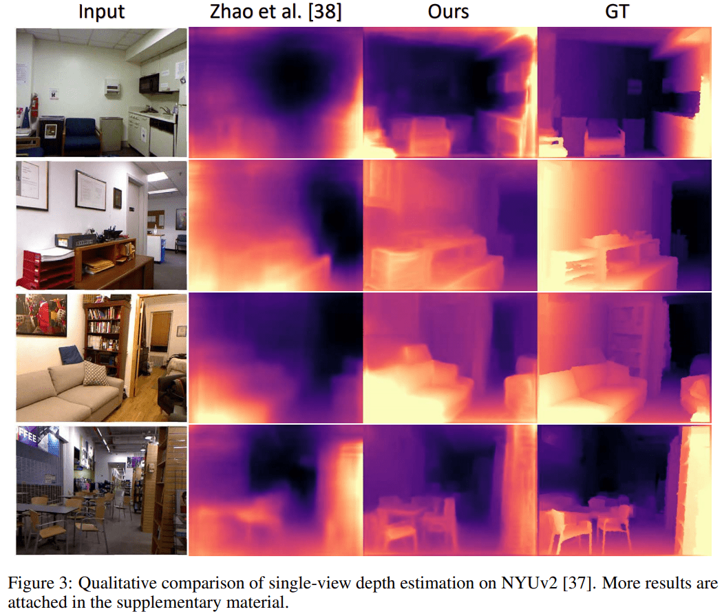 6.深度估计可视化对比结果如下 ([38]是本文中的[6]):
