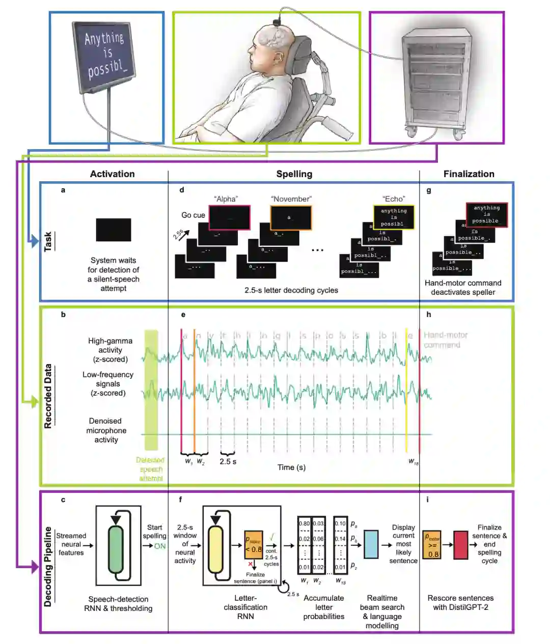 相关研究论文以“Generalizable spelling using a speech neuroprosthesis in an individual with severe limb and vocal paralysis”为题,已于今日发表在科学期刊 Nature Communications 上。神经外科医生、加州大学旧金山分校神经外科和生理学副教授 Edward Chang 为该论文的通讯作者。 这一研究成果凸显了无声控制的语言神经假体通过基于拼读的方法生成句子的巨大潜力。 曾让瘫痪15年男子恢复“说话”能力 理论上,通过在人(或动物)与外部设备之间建立信息传输通路,并利用人工智能等技术构建映射关系,就可以将人(或动物)的意识显示在机器上。