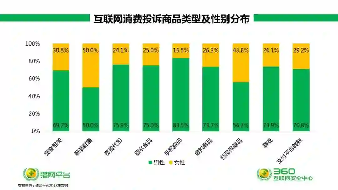 360发布315互联网消费投诉报告:2018年网络消费投诉中,男性用户占7成