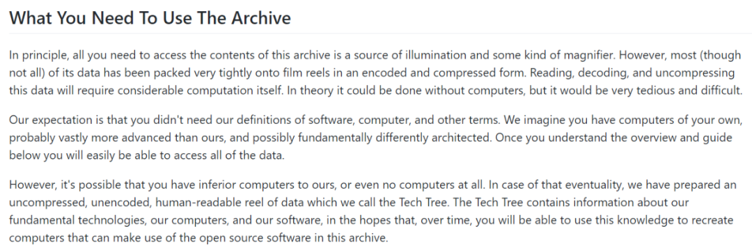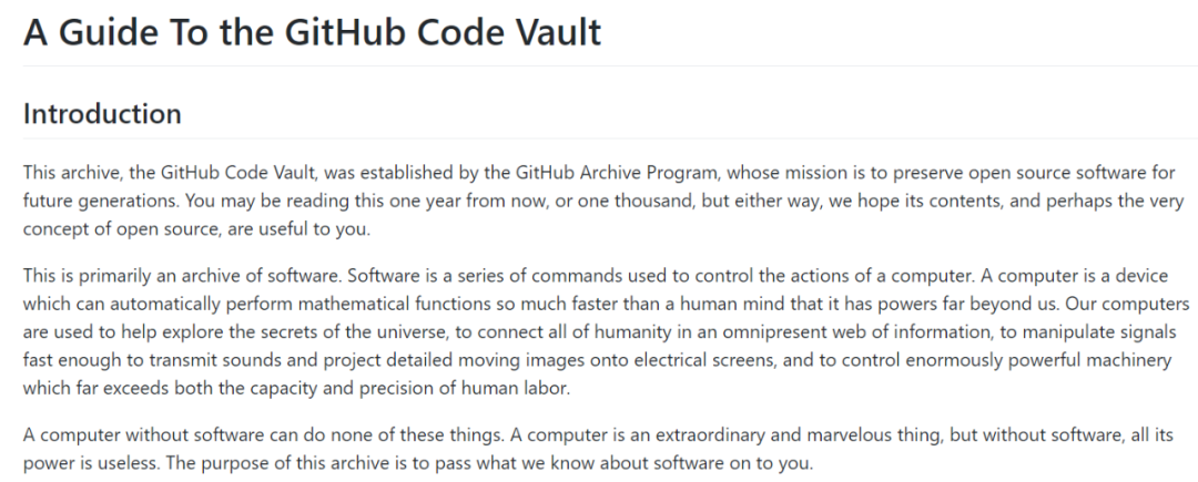 有人在 GitHub 的这份指南中读出了《流浪地球》般的史诗味道,感兴趣的读者可以前去阅读全文:https://github.com/github/archive-program/blob/master/GUIDE.md。