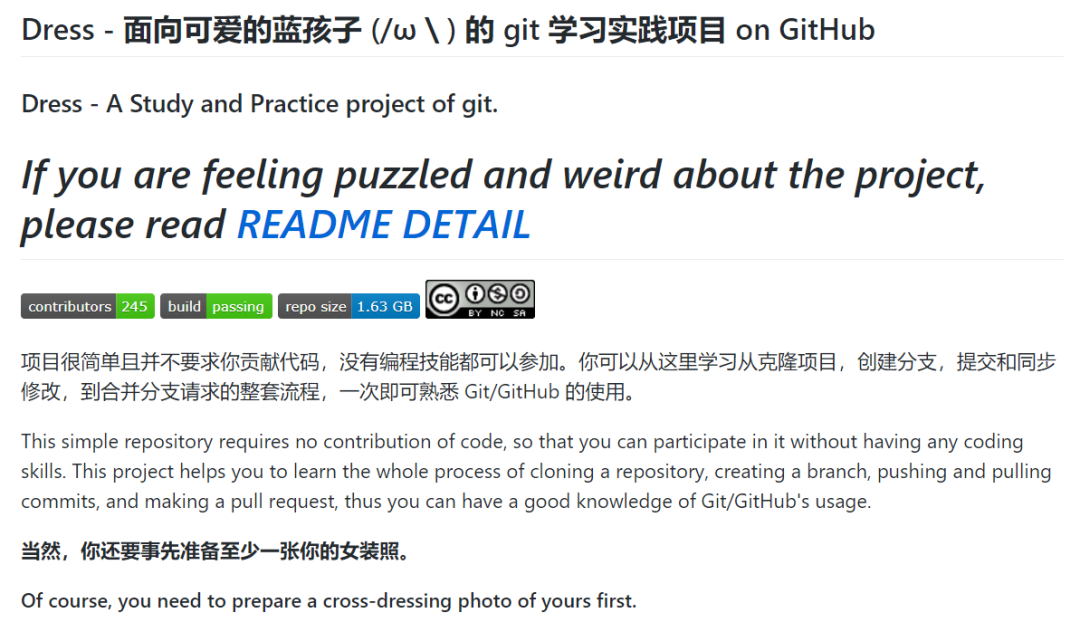 GitHub 上著名的女装项目,star 量 17.6k,贡献者有 248 位。该项目已经得到了 GitHub 给的徽章。