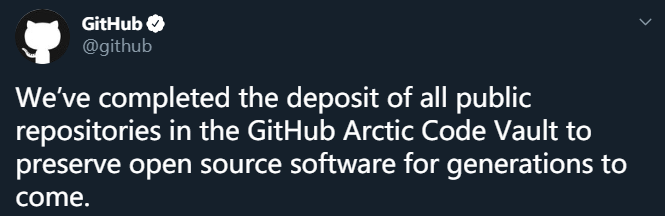 参考链接:https://github.blog/2020-07-16-github-archive-program-the-journey-of-the-worlds-open-source-code-to-the-arctic/