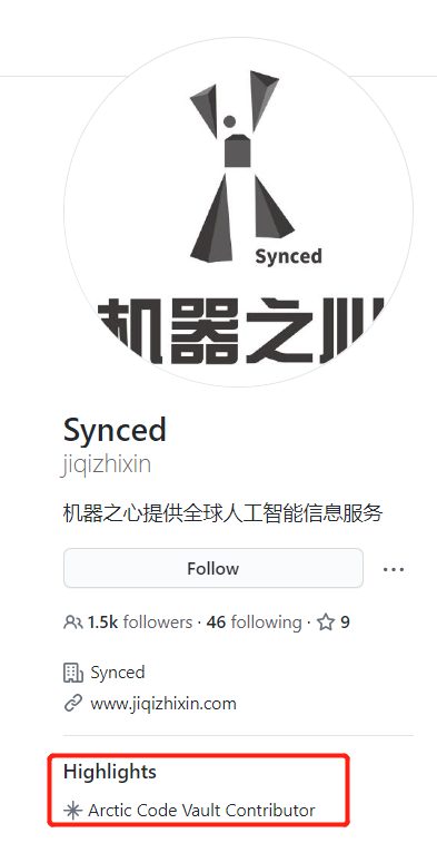 为了表彰广大开发者对开源项目的贡献,GitHub 设计了荣誉徽章(图上的「Highlights:Arctic Code Vault Contributor」字样)。如果你的 GitHub 个人主页下方也有这个徽章,表明你的代码去了北极。机器之心的已经去了。