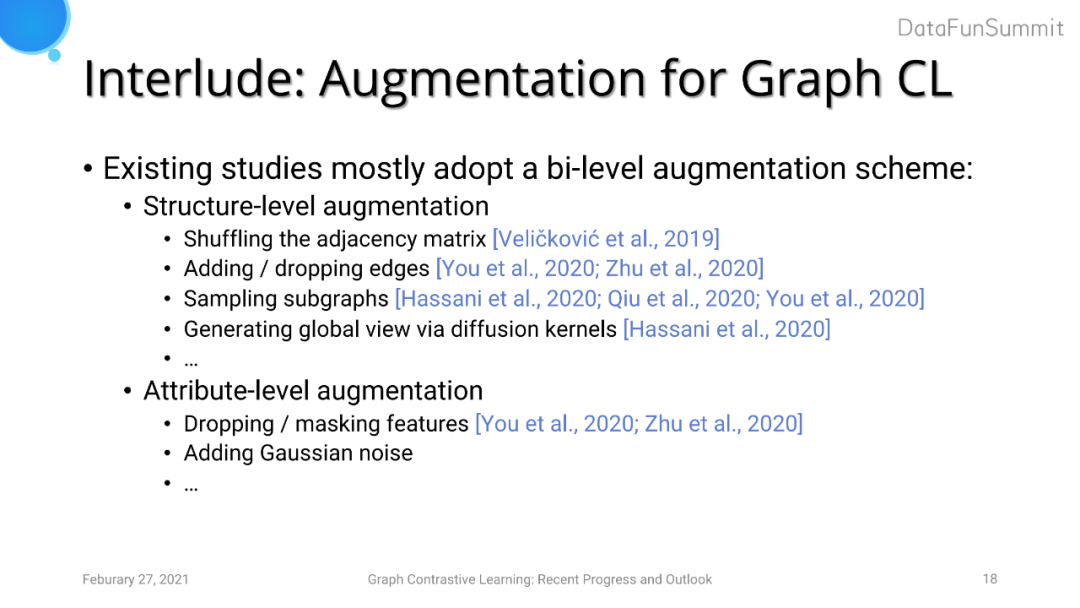 实验证明了针对图结构层面以及属性层面的数据增强策略对图对比学习都有正向影响;