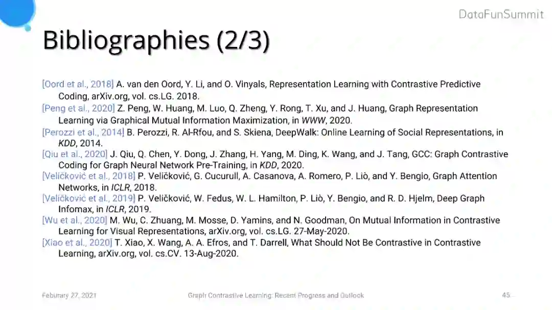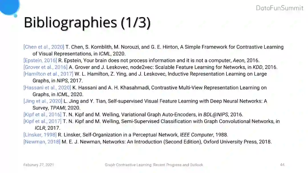 图自监督学习必读论文、survey和演讲: