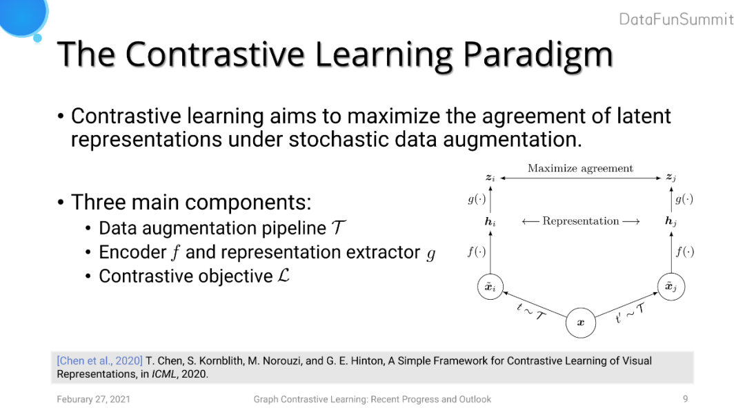 SimCLR是一个目前使用较为广泛的对比学习框架。对比学习的框架由三个部分组成: