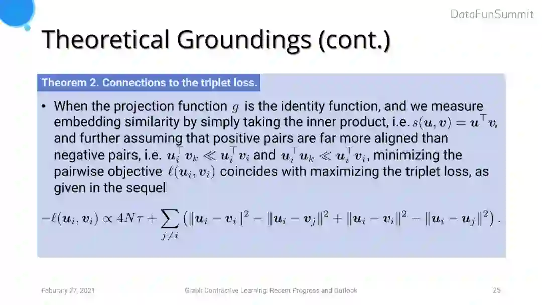 若我们将两个输出特征之间相似度度量简化为向量的内积,GRACE的contrastive objective可以转化为triplet loss的形式。