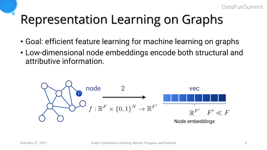 图表示学习旨在对图中节点得到一个低维的表达来编码节点的属性以及结构特征。如果想要得到一个图级别的特征表达,则我们可以对节点embedding进行pooling。