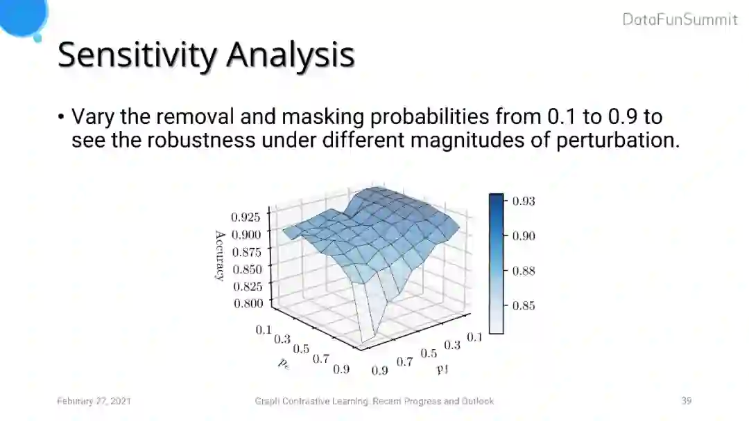 我们还对removal和masking的概率进行了敏感性分析,实验发现如果dropout的概率过大会导致模型无法学习到有用的表达。但是只要dropout概率设置适当,模型在一定的参数配置范围内效果差异不是很明显。
