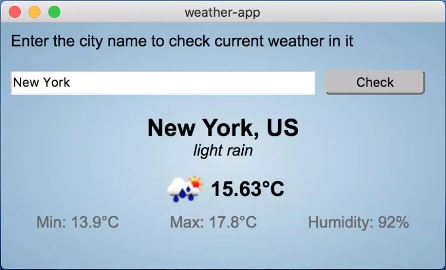 我们要构建一个跟上一篇文章中所述的一样的应用程序,基于 OpenWeatherMap API 的该应用程序用来查看用户所选择城市的天气情况。