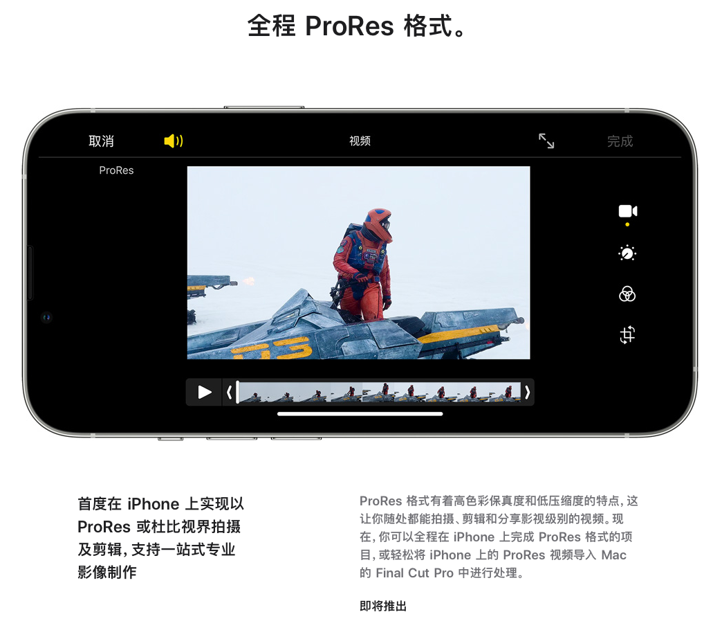 在今年九月的秋季发布会上,Apple 就将 Apple ProRes 视频拍摄作为 iPhone 13 Pro 的重磅功能介绍给用户。如今,随着 iOS 15.1 的更新,Apple ProRes 也终于登陆 iPhone 13 Pro,用户可以用它来拍摄具有高保真色彩和低压缩度的视频,并在后期剪辑中尽可能还原真实色彩。