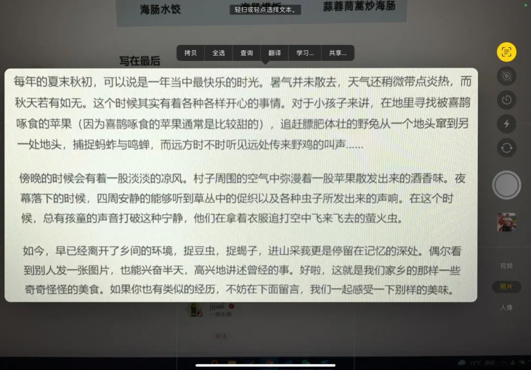 作为 iOS 15 的重磅功能之一,实况文本得到了不少用户的喜爱。不过在 iPadOS 15.0 上,你只能在相册、Safari 等应用中识别图片中的文字,无法像 iPhone 一样通过摄像头实时读取现实生活里的文字。