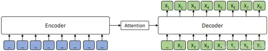 (1)解码器端其它词(在编码器端未被屏蔽掉的词)都被屏蔽掉,以鼓励解码器从编码器端提取信息来帮助连续片段的预测,这样能促进编码器 - 注意力 - 解码器结构的联合训练;