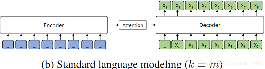 只有作为decoder端的输入,其他的tokens被遮蔽掉。这促使decoder端从encoder端抽取更多有用信息,而不是使用此前tokens中的丰富信息。