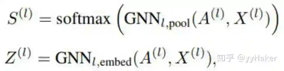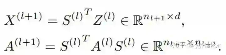 DiffPool其实就是更新每一个簇节点的嵌入和簇节点的特征矩阵,如下公式: