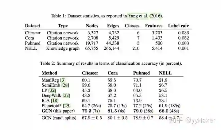 那么GCN的效果如何呢?作者将GCN放到节点分类任务上,分别在Citeseer、Cora、Pubmed、NELL等数据集上进行实验,相比于传统方法提升还是很显著的,这很有可能是得益于GCN善于编码图的结构信息,能够学习到更好的节点表示。