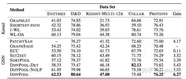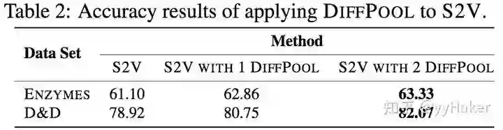 可以看到DiffPool的显著改善了S2V在ENZYMES和D&D数据集上的性能。