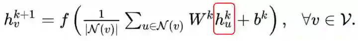 层的所有节点的embedding做了一次线性变换,左乘以邻接矩阵表示对每个节点来说,该节点的特征表示为邻居节点特征相加之后的结果。(注意将