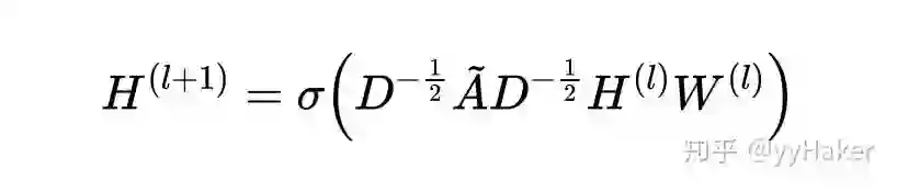 GCN可谓是图神经网络的“开山之作”,它首次将图像处理中的卷积操作简单的用到图结构数据处理中来,并且给出了具体的推导,这里面涉及到复杂的谱图理论,具体推到可以参考[6][7]。推导过程还是比较复杂的,然而最后的结果却非常简单( 图5)。