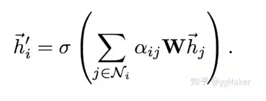 计算完attention之后,就可以得到某个节点聚合其邻居节点信息的新的表示,计算过程如下: