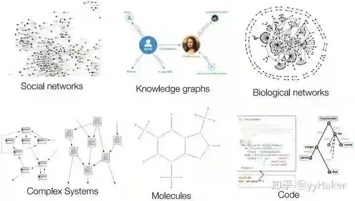 然而现实世界中并不是所有的事物都可以表示成一个序列或者一个网格,例如社交网络、知识图谱、复杂的文件系统等(图2),也就是说很多事物都是非结构化的。