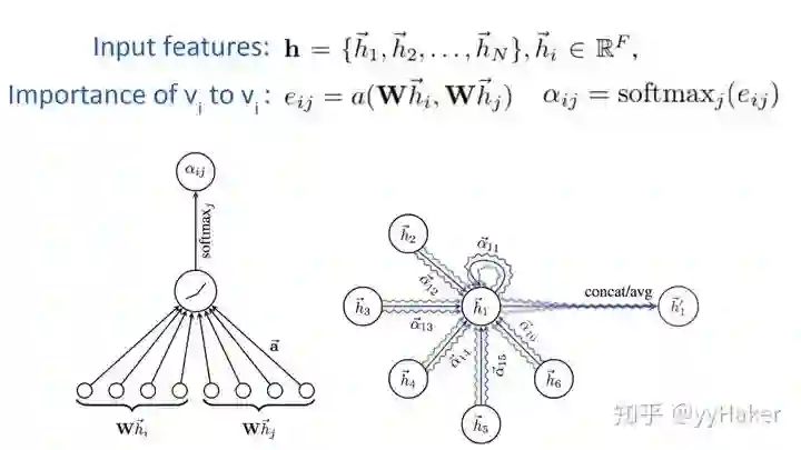 为了解决GNN聚合邻居节点的时候没有考虑到不同的邻居节点重要性不同的问题,GAT借鉴了Transformer的idea,引入masked self-attention机制,在计算图中的每个节点的表示的时候,会根据邻居节点特征的不同来为其分配不同的权值。
