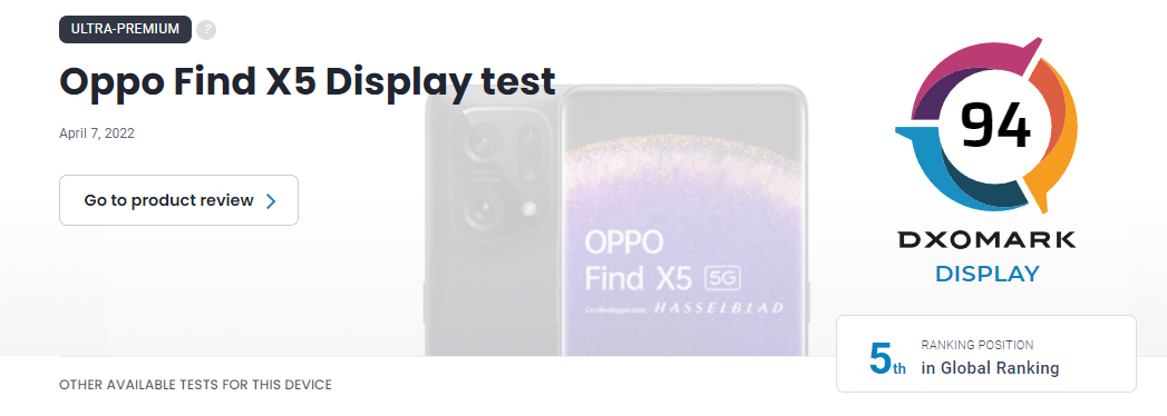 今日,DxOMark 发布了 OPPO Find X5 系列屏幕测试报告,根据其公布的信息显示,OPPO Find X5 屏幕得分为 94 分,在全球屏幕排行榜中位列第五名,OPPO Find X5 Pro 屏幕得分为 95 分,在全球屏幕排行榜中位列第三名。