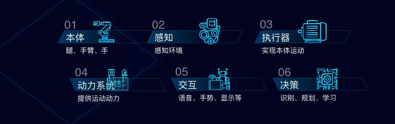 机器人由六大部分组成:本体、运动执行器、动力系统、感知、交互和决策系统。