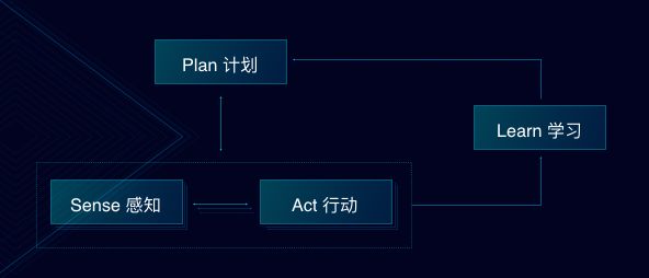 第一步,让感知(Sense)和行动(Act)相连,先得到反应式自主。在上层规划后,做到长期自主去规划(Plan),就是有意识的自主。