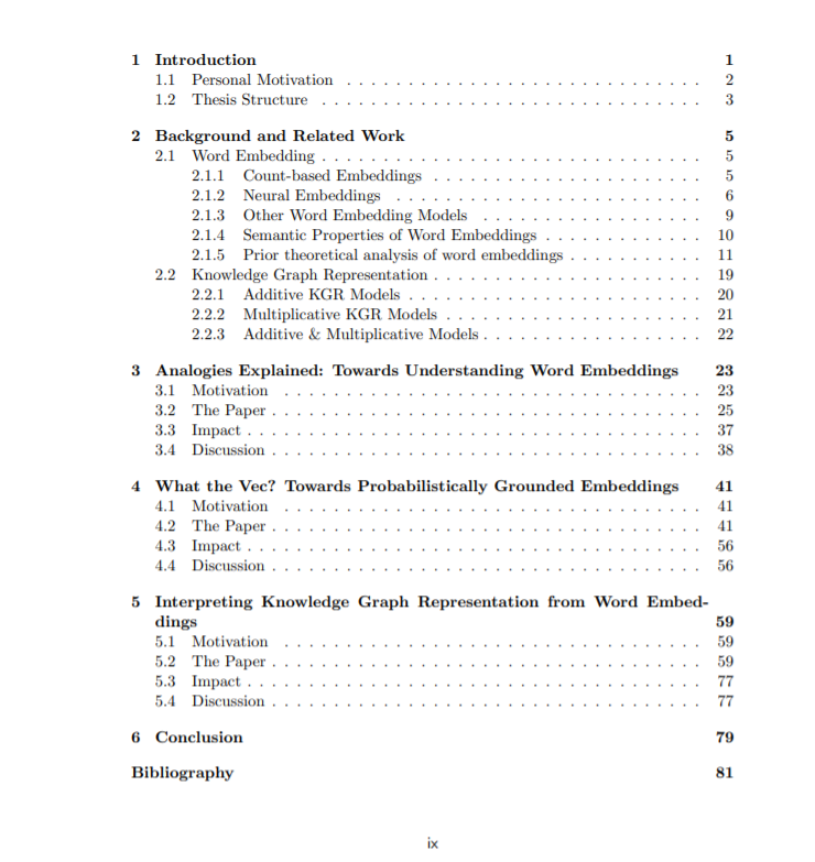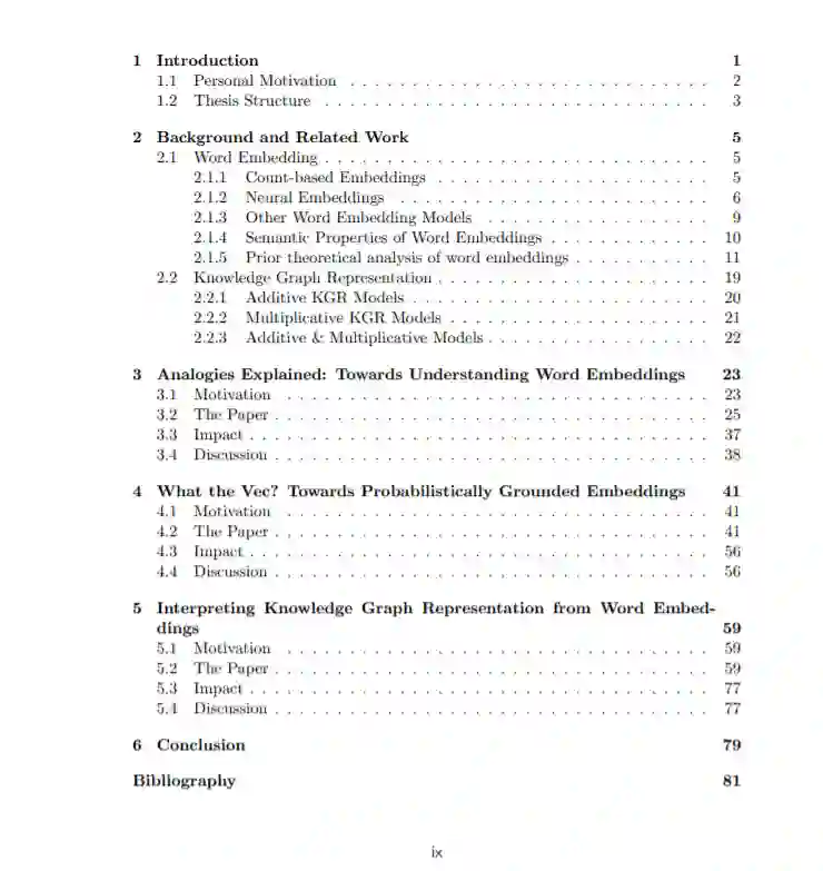 4. 尽管最近关注的焦点转向了大型语言模型和上下文嵌入(e.g. Devlin et al., 2019; Brown et al., 2020),理解“更简单”的非上下文嵌入可能为理解这些更复杂的模型提供必要的基础;