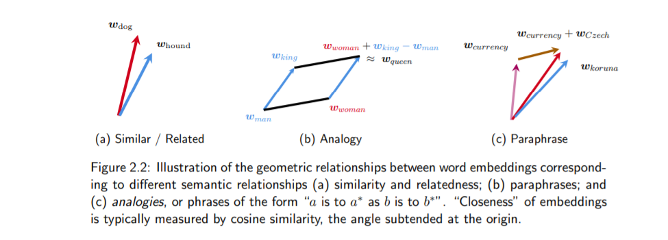 1. 通过word2vec和GloVe等算法学习的单词嵌入之间的特定几何关系对应于单词之间的语义关系,从理论上证明了经验观察的正确性;和