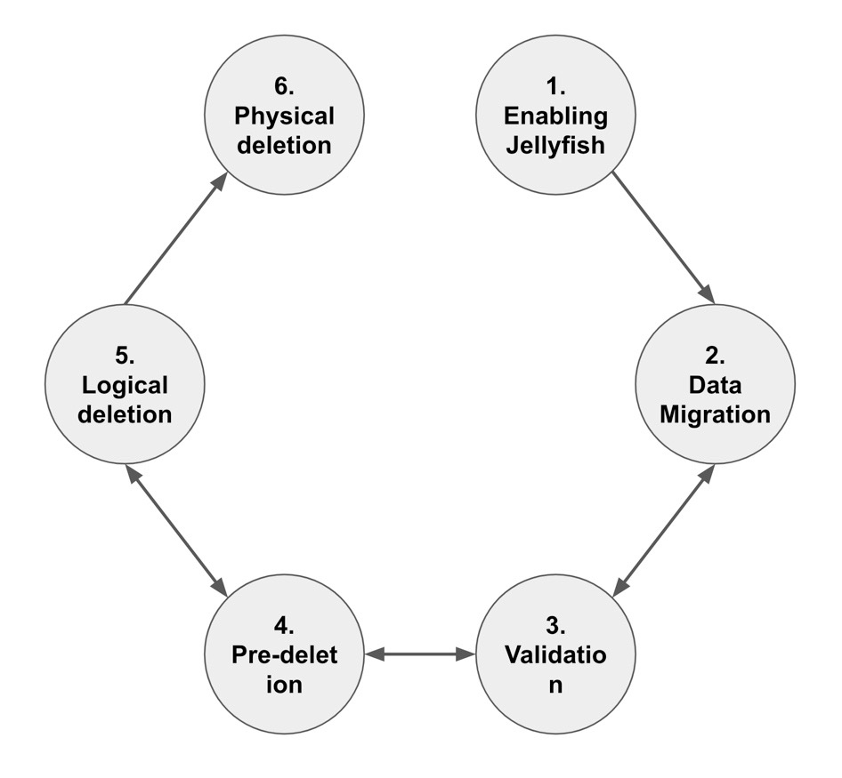 随着 Jellyfish 准备就绪,我们开始将其推广到生产系统中。Uber 的行程存储系统 Mezzanine 占用的空间特别大。我们对如何分阶段推出 Jellyfish 进行了讨论。