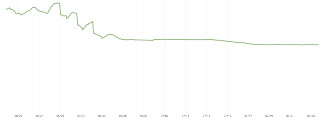 在 Jellyfish 全面推出并确认可以满足我们的要求后,我们就准备开始收获了。为此,我们开始分阶段地从旧的后端中删除数据。下图显示了在开始删除后的几天内,实际占用的存储空间减少的情况。在我们的情况下,Jellyfish 节省了 33% 的存储空间。