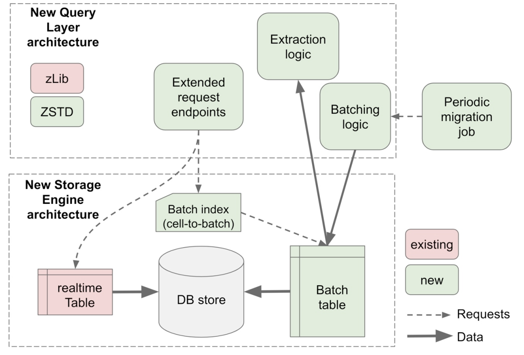 在这一点上,我们意识到,借助压缩和批处理,我们可以在同一层中对数据进行内部分层,进一步减少旧数据的空间占用。这使我们能够把延迟控制在所要求的几百毫秒之内。由于批次大小和 ZSTD 是可配置的,我们可以针对目前由 Schemaless 提供服务的不同用例调整我们的解决方案。通过恰当的实现,我们也可以满足效率要求,达成上面讨论的所有 4 个要求。