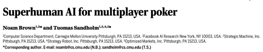[3] Brown, Noam, and Tuomas Sandholm. "Superhuman AI for multiplayer poker." Science (2019): eaay2400.