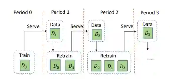 事实上,在推荐系统的学术研究中,我们过于关注模型的创新,而忽视了落地可行性以及实用性。这与模型的新颖度和复杂度不同,是另外一个层面的值得我们考虑的问题。因此,本文中所推荐的论文,是针对推荐系统的定期重训练需求设计的模型。本人认为这是一个不错的话题,因此推荐给大家。但是,本文并非对论文的翻译,而是将文中的想法和思路简明扼要地传递给大家,如想了解论文的全貌还请精读原始论文。