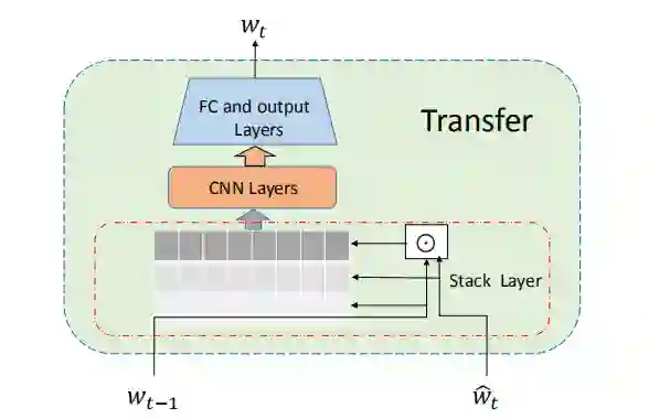 (1)表达转移组件。构建一个表达传递组件,将先前训练中获得的知识转移到新交互的训练中。我们将传递组件设计为卷积神经网络(CNN),该卷积神经网络将先前的模型参数输入为常量,将当前模型的输入作为可训练参数。合理性在于,先前训练中获得的知识会集中在模型参数中,这样,表达性神经网络就应该能够将知识提炼到所需的目的。