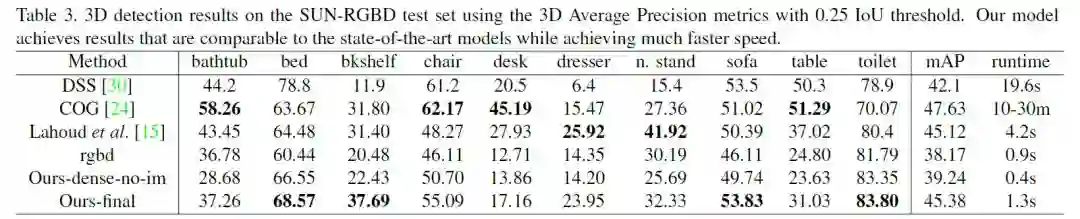 我们在两种不同的数据集上对PointFusion进行了评价,KITTI数据是由激光雷达和相机采集的驾驶场景,SUN-RGBD数据集是RGBD深度相机采集的室内环境。在没有对任何指定数据集模型进行调参情况下,与目前最好的方法相比,我们的模型能够表现出相当或者更好的效果。