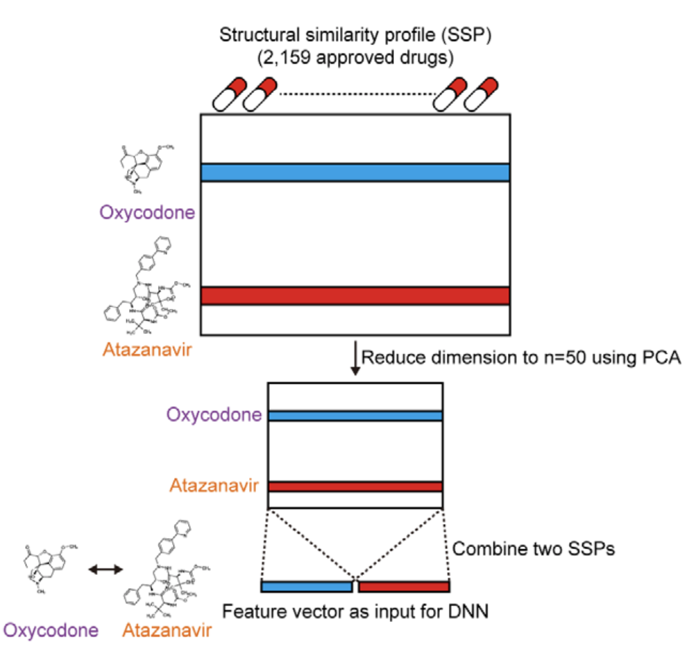 得到SSP,它是对药物表示的2159维特征向量。把两个输入药物的特征向量,都用PCA降到50维的向量,然后将两个药物的特征表示concat一起,得到100维的Feature vector作为DNN的输入。