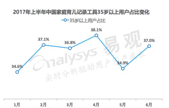 从年龄上看,育儿工具用户中35岁以上人群不断扩大。1月至6月该群体占比一直在30%以上,除5月有所下跌以外,占比呈上升趋势。随着第一代独生子女开始进入主力育儿年龄阶段,父辈对孩子的关注度逐渐增多,关注祖辈用户需求成为新的市场机会。