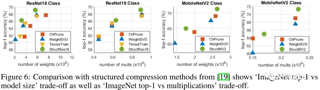 此外,作者还对比了所提方法与减枝、张量分解等的对比,见下图。
