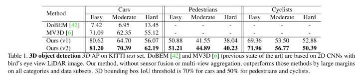作者在附录中给出了结合点云鸟瞰视角的F-PointNet的实验,结果显示,对于hard的场景,结合鸟瞰图的F-PointNet有3.82%的提升。这是因为,hard场景下目标遮挡很严重,2D目标检测根据图片不能很好地检测到目标,而鸟瞰图能很好地分辨出不同目标。