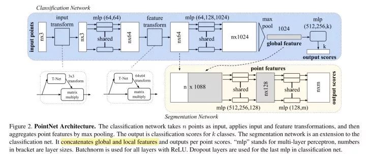 PointNet的模型结构如上图所示,其关键流程介绍如下: