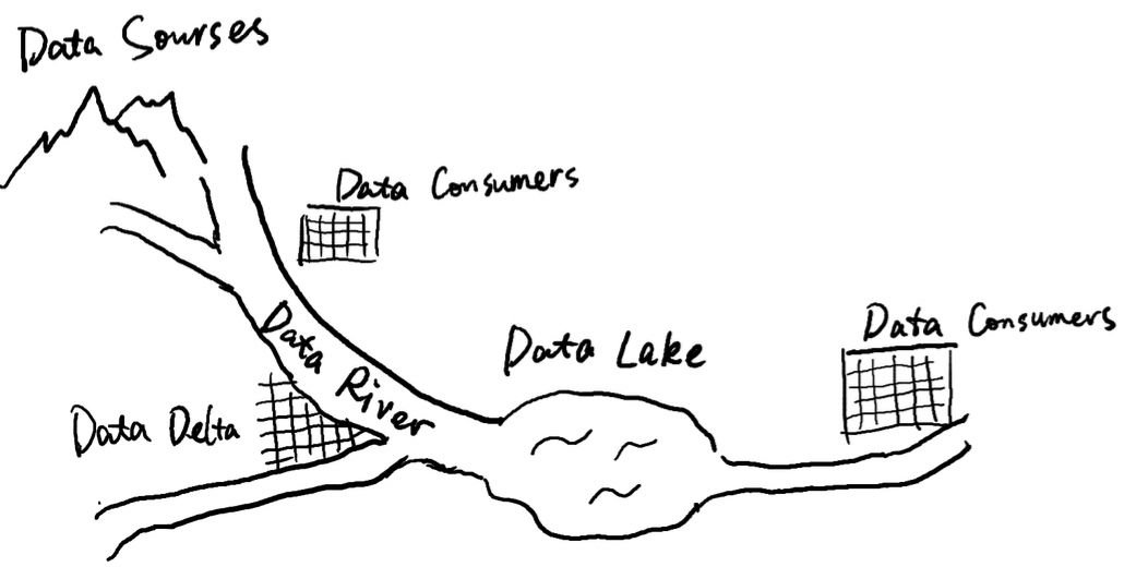 数据河(Data River)就是在由源头产生清晰干净的有效数据(去ETL化,数据源头业务就像生态水源一样,不让污水流下去),通过各个河流网,流向各个数据消费端的架构。