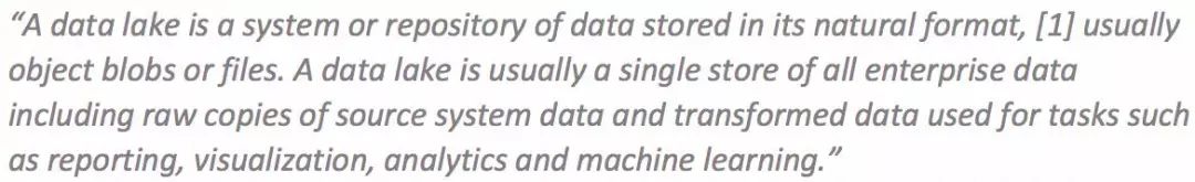 简而言之,数据湖是按存储原始数据格式的数据存储,旨在任何数据可以以最原始的形态储存,可是结构化或者非结构化数据,以确保数据在使用时可以不丢失任何细节,一般以Hadoop系统存储为比较典型的解决方案,所有的实时数据和批量数据,都汇总到数据湖当中,然后从湖中取相关数据用于机器学习或者数据分析。一个典型数据湖的结构如下图所示: